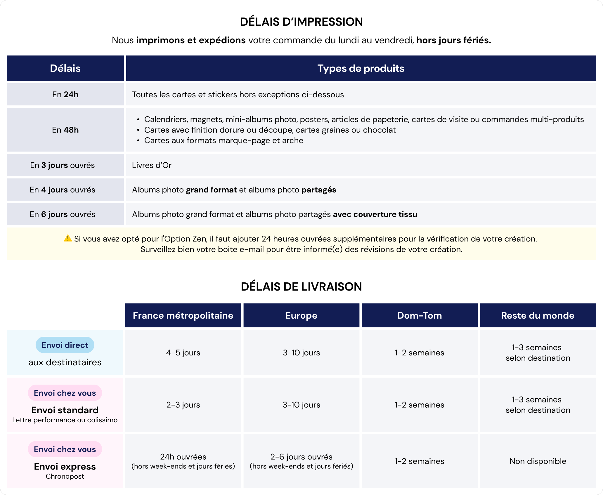 ⚠️ Chacun de ces délais vous sera précisé au panier avant paiement.
